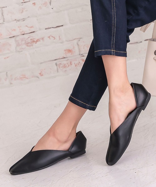 Vカットデザインで、フラットシューズでも美脚に見せてくれます。