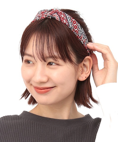 エスニックさが際立つヘアバンドエスニックな総柄が目を惹くデザイン。