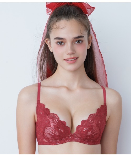 落ち着いたレッド濃淡のレースに、メタリックレッドの箔プリントを施したスペシャルカラー。ほのかにまたたく上品な輝きで、ホリデイなどの特別なシーンはもちろん日常使いにも。