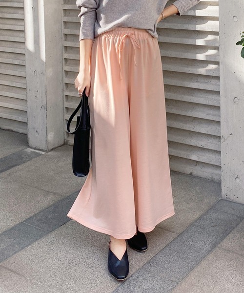 【素材・サイズ感】肌あたりの良いスウェット素材を使用。ロングシーズン着用しやすい素材感。ゆったりしたサイズ感で、ラクに可愛くキマります。ウエストは総ゴム仕様で、ストレスフリー◎身長やお好みのスタイリングに合わせて、選べる丈感も嬉しいポイント。