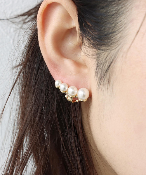 耳に沿うメタルラインにパールを施したデザインイヤリング