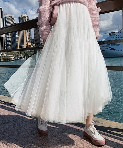 【ふんわり穿き心地ロング丈シアーチュールスカート】