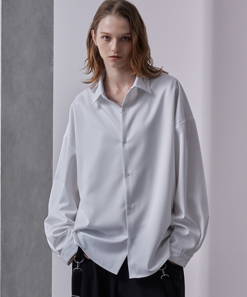 Loose定番のドレープトロミボリュームスリーブシャツに比べてハリのある生地感と程よいルーズシルエットが魅力です。