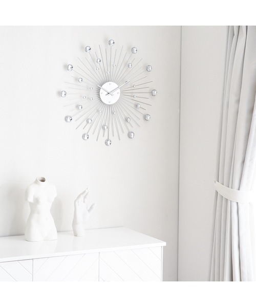 キラキラ輝くビジューが豪華な印象のウォールクロックです。