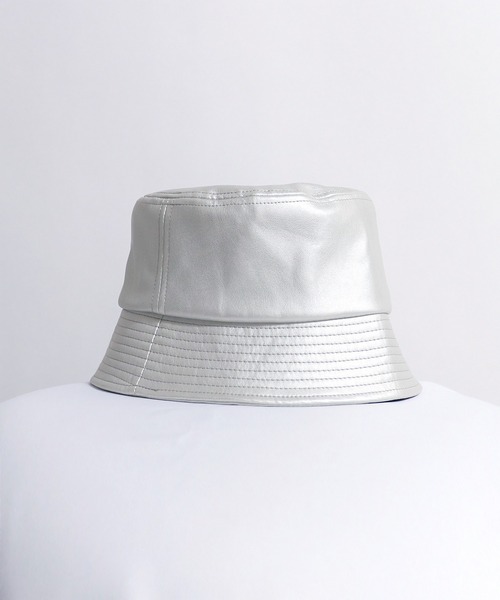 様々なスタイリングになじむ万能シンセティックレザーバケットハット。