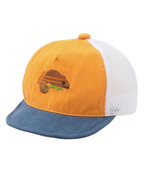 カメレオンがワンポイントのメッシュキャップ帽子。