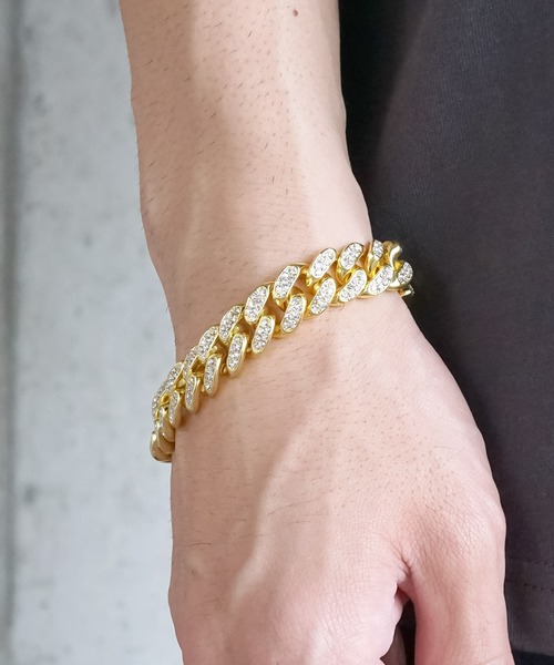 太めの喜平チェーンの一面に敷き詰められたキュービックジルコニアが存在感抜群。