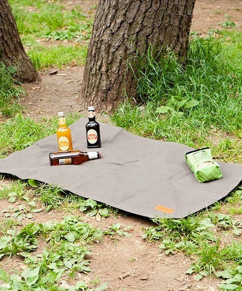 表面にワックスコーティングを施し、耐水性を向上させたレジャーシート。 加工によりひとつひとつ異なる表面の風合いが、どこかビンテージ感を醸し出します。 厚みはしっかりとした12oz、四隅にはホールがありペグが利用できる仕様です。 アウトドアシーンで、少し周りと差を付けたい方におすすめです。 (ペグは付属されておりません。)
