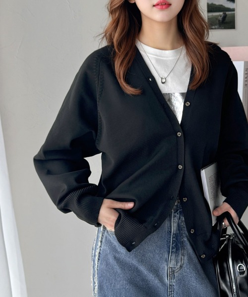 シンプルデザインで、1枚で女性らしさのあるコーディネートが完成するこのカーディガンで