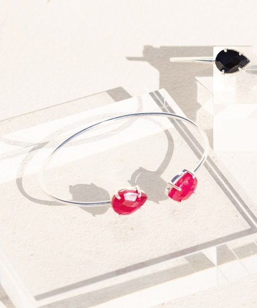 美しい色合いの雫型ルビークォーツがポイント。手元を大人っぽく華奢に魅せるバングル。