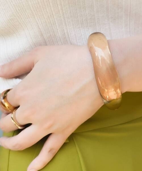 コーデのアクセントになるクリアバングル。