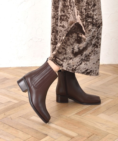 ゴア部分のゴムが革で目隠しされたカジュアルな雰囲気を抑えめに、