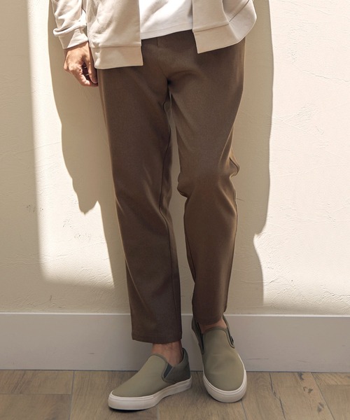 ストレッチ性・消臭・アンチピリング・イージーケア表情豊かなアムンゼン生地を使用したアンクル丈のパンツ。