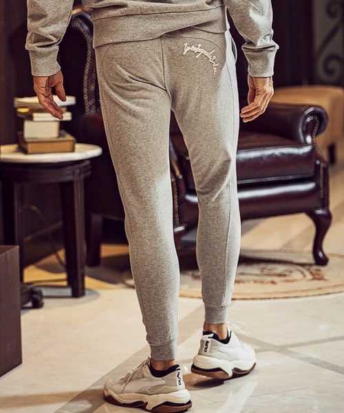 昨シーズン人気を博した筆記体をコード刺繍で取り入れたスウェットパンツ。