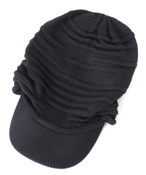 表情豊かなイレギュラーなタック編みが段々に入っていて、かぶり口の部分はロールアップになっていて、さりげないポイントになっています。