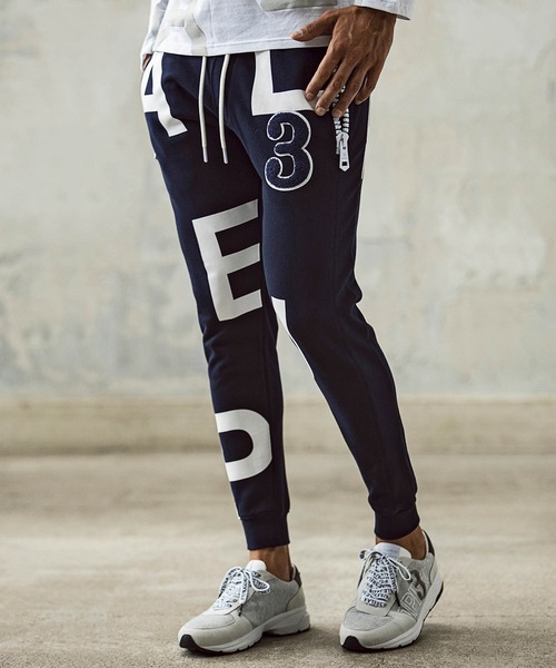 全体にブランドロゴをランダムに散らしたオリジナルの総柄がアクティブな印象を形成。