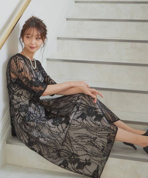 華やかだけどモードな雰囲気のレースドレスなら幅広いシーンで活躍しそう。
