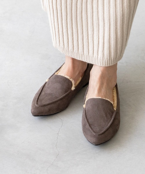 ポインテッドトゥがキリリと美しいローファータイプならふわふわなのにキレイ見え!