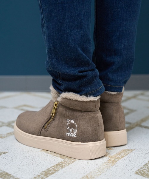 【商品仕様】スエーデンのブランドMOZのアンクルブーツ。滑らかな手触りのフェイクファーがくるぶしまで足をすっぽり包み込むから、とってもあったか!
