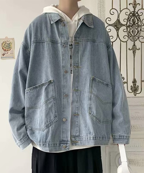 「ビッグポケットオーバーサイズデニムカバーオールジャケット」