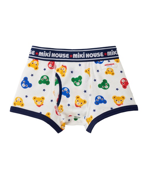 マルチカラーのプッチーとmikihouseロゴの総柄プリントで、お着替えを楽しくしてくれます!