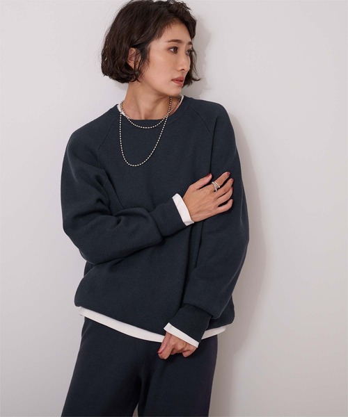 ・スウェット風のデザイン:カジュアルな雰囲気ながら、ニットならではの上品さをプラス。