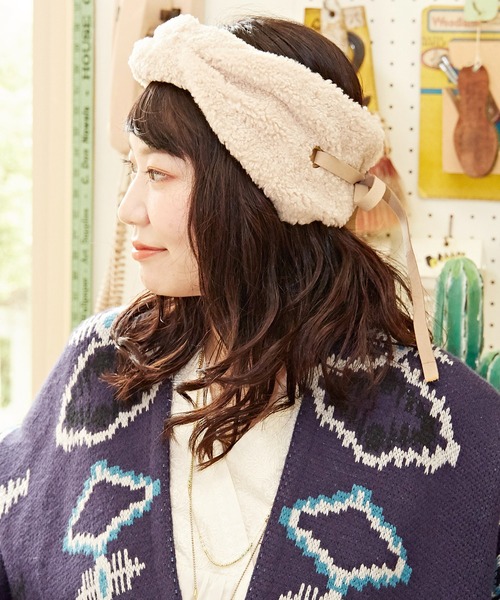 柔らかなカラーリングのボア素材を使ったヘアバンド。飾りのコード(紐)はそのまま垂らしたり、結んだり、自由にアレンジをお楽しみください。