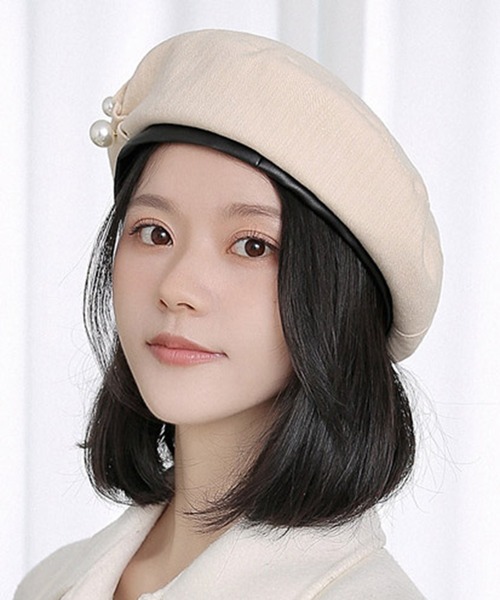 こなれたおしゃれ感を演出するパール付きベレー帽。クラシカルでエレガントな雰囲気で被るだけで今どきスタイルが完成★