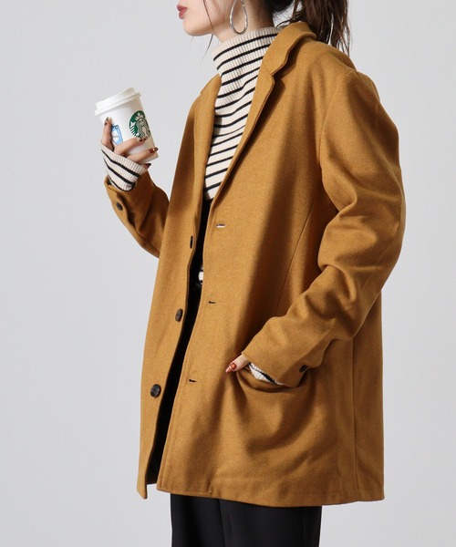 女性も流行りのオーバーサイズの装いにピッタリくるコートです。
