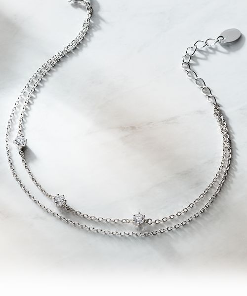 ほどよいボリュームの2連のチェーンが華奢な手元を演出します。