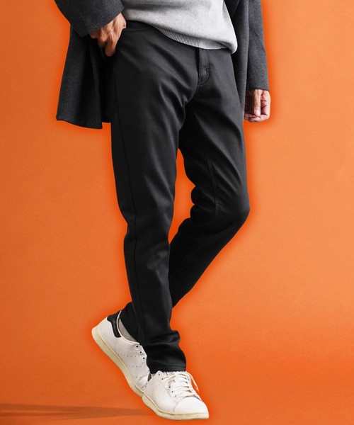 通常のチノやデニムのスリムパンツを思わせる見た目ながら、内側に蓄熱素材を仕込んだ、まさに「あったかパンツ」仕様の裏フリースのストレッチパンツ。