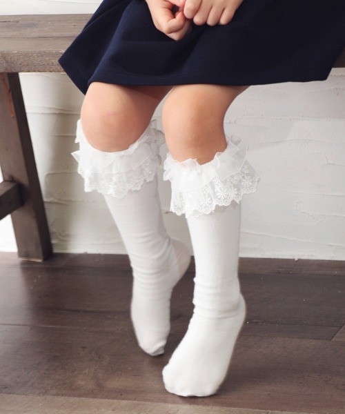 ・特徴:チュールと刺繍レースがポイントの白ハイソックス