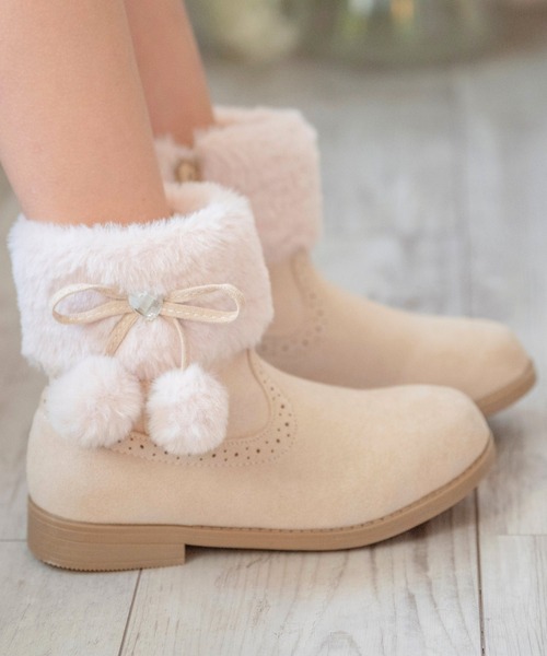 キュートディテールのショート丈ブーツスウェード調のマットな質感が
