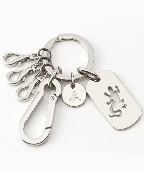定番人気のメタルプレートキーホルダーのレザール(とかげ)ver. です。カラビナ付きでバッグのハンドルやベルトループなどに装着可能で、実用性も◎。自分用にはもちろんギフトにもおすすめのアイテム。