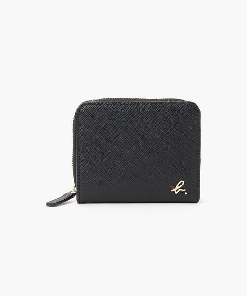b.ロゴメタルがポイントのサフィアーノエンボスレザーを使用した2つ折りウォレット。