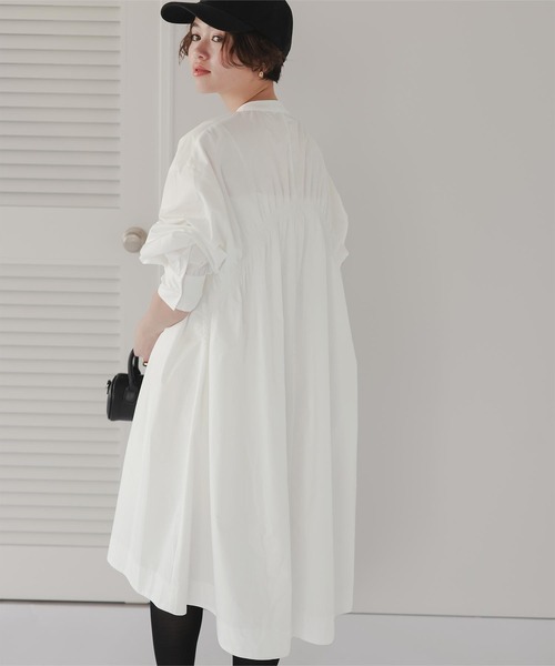 後ろ姿までこだわった、シンプルで上品なバンドカラーワンピース。