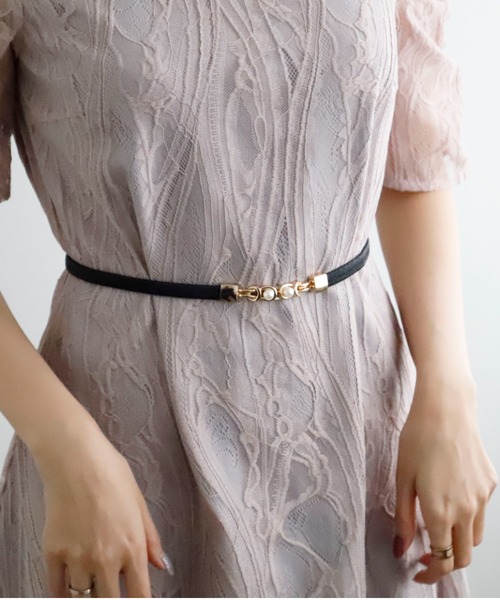 結婚式、二次会、ちょっとしたお食事会におすすめベルト♪ パールモチーフが女性らしさを引き立てるゴムベルトです。