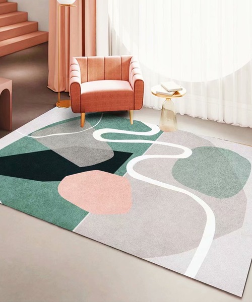 幾何学柄がとってもモダンでお洒落なラグカーペット。