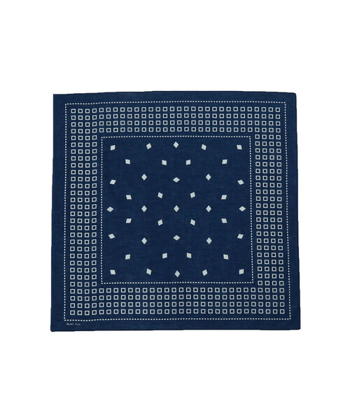 柄はシンプルなドット柄の大小で、抜染にて柄抜きしヴィンテージバンダナの手法を取っています。日常のバンダナとしてはもちろん、ワークスタイルのアクセントとして首に巻くスタイルもおすすめです。