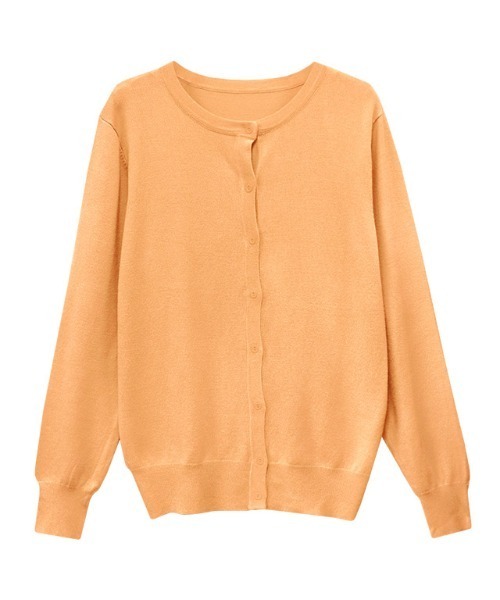 シーン問わず着回せる万能デザイン“クルーネック・シルクタッチウォッシャブルニットカーディガン”