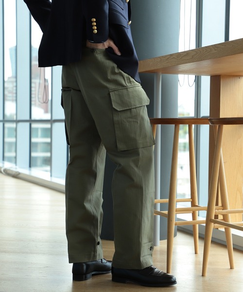 スタイルを飾るモダンシルエット1967年まで生産されていたフィールドパンツ『M47』をベースに、製作されたストレートシルエットのトラウザース。テーラードパンツで使用されるプリーツ入りのマーベルトと芯地が使用され、腰回りに吸いつくような穿き心地が実現します。裾のベルトを絞ると、シルエットも変更可能。カジュアルスタイルからジャケットスタイルまで、幅広い着こなしが楽しめる1本です。
