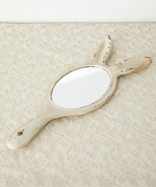 鏡 うさぎの耳モチーフのデザインでフェミニンムードを高めるハンドミラー