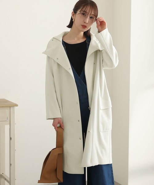 襟元を開けても閉めてもおしゃれな着こなしに。シンプルで様々な服装に合わせやすいデザインです。柔らかい生地感で着やすさも抜群の春アウターです。