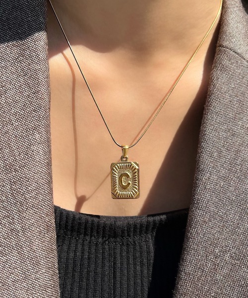 プレートトップに定番人気のイニシャルがデザインされたステンレスネックレス。
