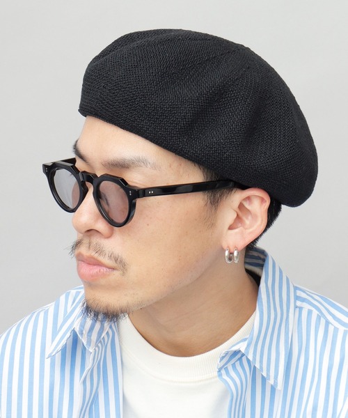 麻混素材を使用した、清涼感溢れるベレー帽。程よい深さで万人に被りやすいシルエットに。