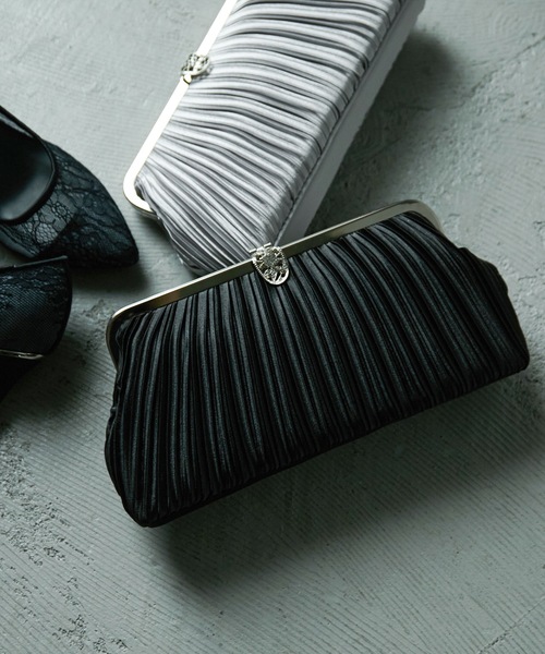 がま口開閉に華やかなビジュー留め具が付いた上品なクラッチバッグ。