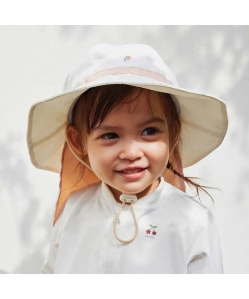 お洋服にも、ラッシュガード・水着にもコーディネートできるサファリハットです。