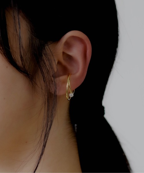 パールとラインを組み合わせたシンプルなデザインのイヤーカフ。