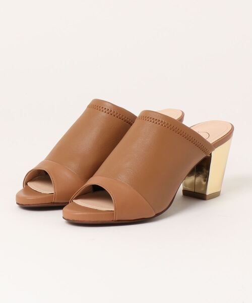ソフトタッチの革にストレッチをきかせた足入れの良いミュール。深めなので甲を覆い、ヒールも太目なので更に安定感があります。ヒールは本革箔加工で高級感のある雰囲気に。楽だけどおしゃれなミュールです。