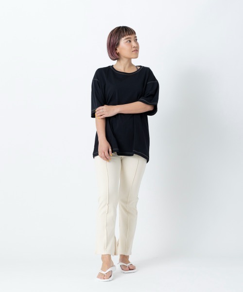 POPなカラー展開も可愛い、配色STのゆったりシルエットの半袖ラッシュTシャツ。ハイブリッド素材で普段着でも着れる一枚。